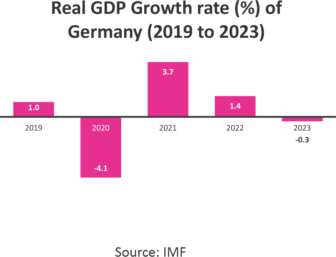 Germany is the largest economy of Europe and fifth largest in the world in terms of Purchasing Power parity (PPP). Its highly skilled labour force, continuous advancement in technology and well thought out development planning has made it one of the leading developed economies of the world. Like the rest of the world, Germany also suffered economic losses during the pandemic, revival from which was mired by geo-political tensions across the globe. Recovery in investment growth is expected in 2025. Overall real GDP growth is forecast to increase by 0.1% in 2024 from a 0.3% decline in 2023. In 2025, real GDP growth is forecast to recover moderately to 1.0% in 2025.