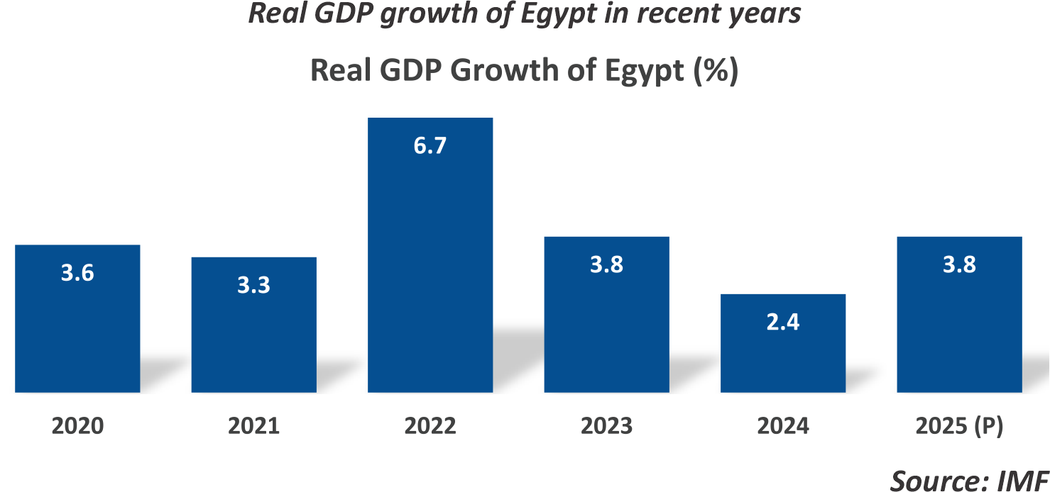 Egypt is strategically located as a gateway to Africa, Asia and Europe. Despite being classified as a lower middle-income country, it possesses significant potential to leverage its existing agriculture, manufacturing, and services sectors. Due to its large domestic market and locational advantage, Egypt is considered as an attractive investment destination for foreign investors. Despite of challenges included elevated public debt, sluggish exports performance, below-potential private activity and productivity, Egypt is well on the road to macroeconomic stabilization and accelerated structural reforms supported by the IMF, the World Bank and other development partners.
