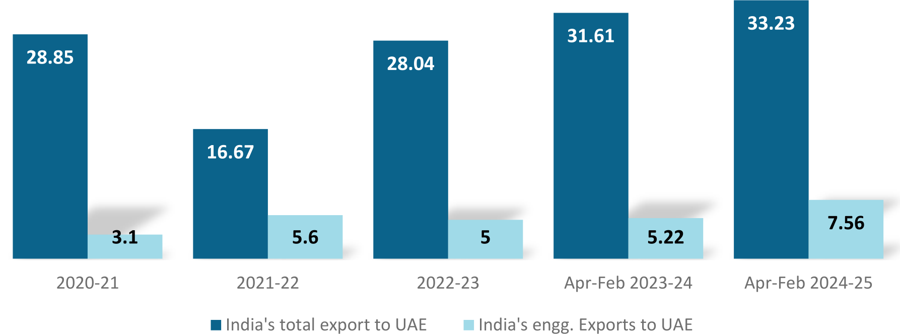 UAE is an important trading partner for India. The two countries share a Comprehensive Economic partnership Agreement (CEPA) which completed three years after its signing in February 2022. Since the signing of the agreement, the bilateral trade between the two countries have increased significantly. As per latest data available, since the signing of CEPA, bilateral merchandise trade has nearly doubled from USD 43.3 billion in FY 2020-21 to USD 83.7 billion in 2023-24. In engineering sector, UAE has been one of the top three export destinations for India. In 2024-25, India's engineering exports to the UAE stood at USD 8.3 billion which is 40.3% higher than the same period last year.